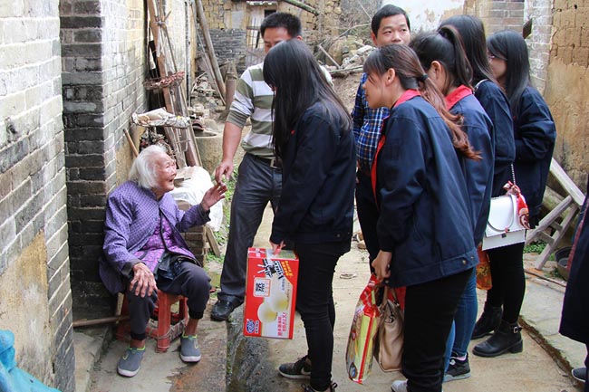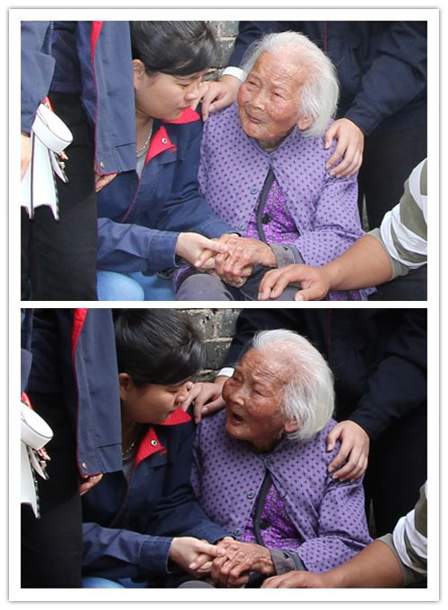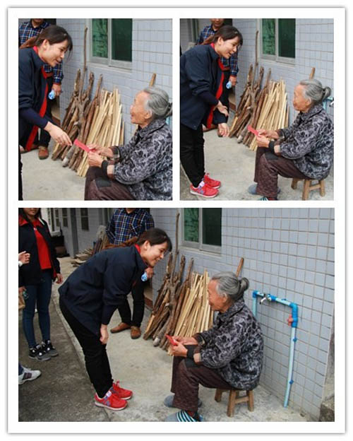 老奶奶一直握著我們的手,含著眼淚說了很多話。此情此景,很多女同事不禁流下了眼淚。臨別時候,老奶奶還為大家送上祝福,祝大家事事順利、財源廣進。