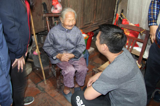 這位老奶奶105歲,兒子已離世,只有孫子,患有腿疾走路不便??吹酱蠹?,她說話有些激動。