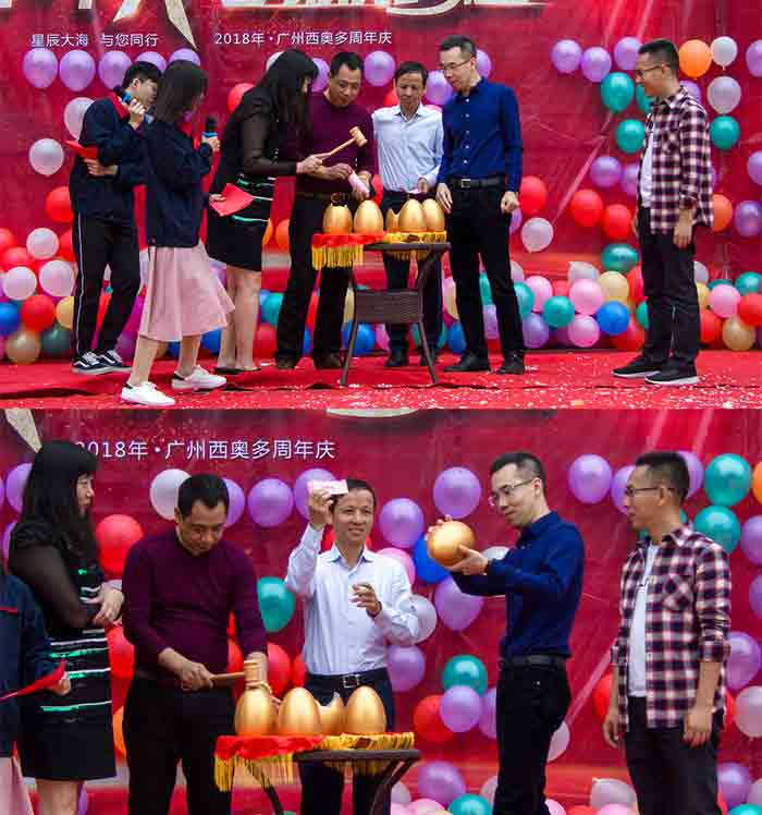 砸金蛋、中紅包、中紀(jì)念品,觀眾席間一波又一波的驚喜歡呼聲響徹會(huì)場(chǎng)。
