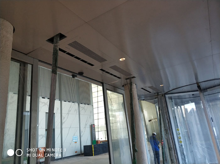 嵌入天花板或吊裝設(shè)計(jì),適合于無(wú)法側(cè)裝的高檔玻璃門(mén)、側(cè)面無(wú)足夠進(jìn)風(fēng)空間等特殊環(huán)境。全金屬外殼,鋁合金進(jìn)風(fēng)面板,耐用不生銹、易于清潔、防火性能高。